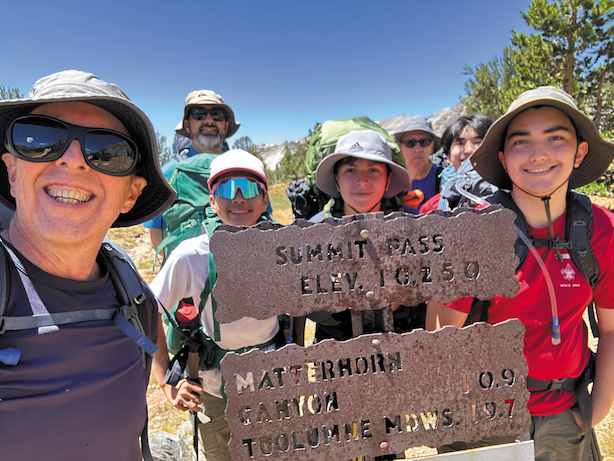 PICTURED are Matt Rauchberg, Andy Fiedler, Holden Tsao, Matthew Angulo, Rafael Angulo, Carter Tsao, and Joseph Fiedler backpacking at Summit Pass, Yosemite National Park in July.