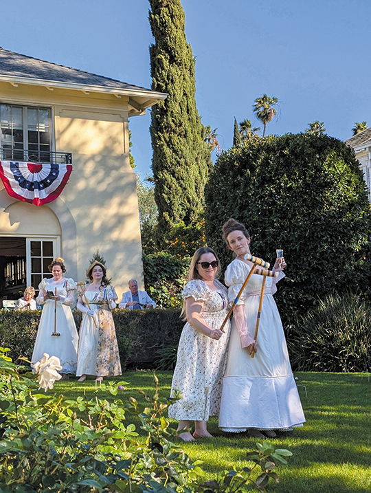 Daughters of the American Revolution had a ticketed afternoon affair and blended living history with philanthropy on Feb. 21. Some guests arrived in Colonial-era attire, portraying figures such as Betsy Ross, Dolley Madison, General Lafayette, and Benjamin Franklin, transforming the manicured lawn into a vibrant tableau of early American life complete with a croquet court.