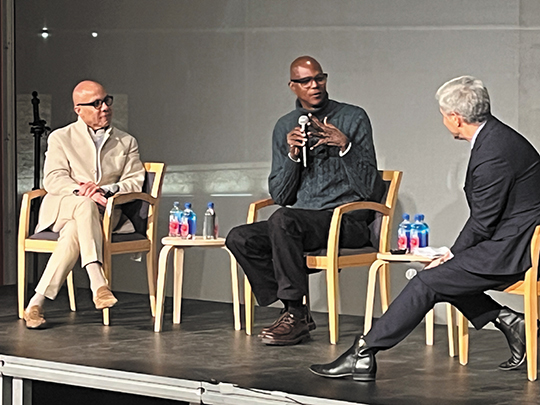 GENESIS TALK from January 2026 with (from left) Ford Foundation former president Darren Walker, artist Mark Bradford, and CEO and Wallis Annenberg Director of LACMA Michael Govan.