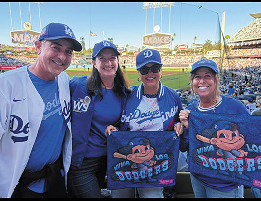 ROOTING FOR THE Dodgers last month, against the Milwaukee Brewers, at Dodger Stadium were Anthony and Amanda Mansour, Heather Duffy Boylston and Susan Kneafsy.