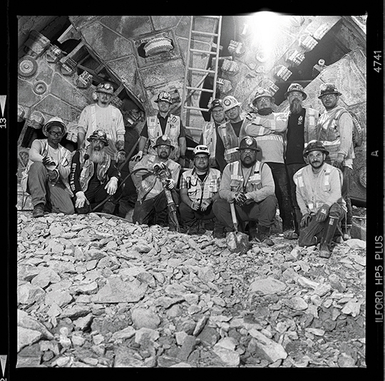 MINERS pose in front of a drill cutterhead after completing Reach Four of the extension project. Photos by Ken Karagozian