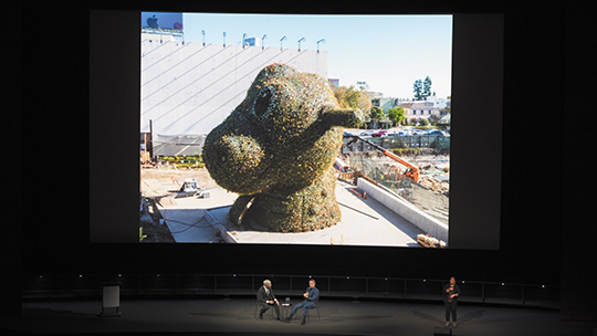 LACMA CEO and Wallis Annenberg Director Michael Govan was in conversation with artist Jeff Koons at the David Geffen Theater. Koons’ monumental sculpture “Split-Rocker” was recently installed outside the museum’s new David Geffen Galleries. The building is scheduled to open in April.