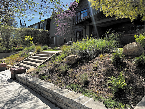 DROUGHT-TOLERANT LANDSCAPING at the Higgins home.