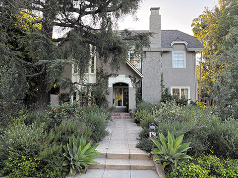 Heather and John Fogarty’s 1920 French Normandy Revival home, designed by architects Walker & Eisen, has unusual drought-tolerant landscaping done in the style of an English garden. Designed by Cheryl Kellough, the property also features a scent and sunrise garden, where flowers dazzle with the colors of the early morning sky. Jasmine, roses, honeysuckle and wisteria were selected with fragrance in mind.