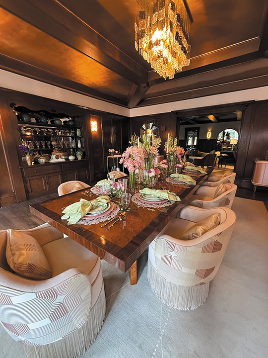 MIDNIGHT GARDEN dining room, inspired by Clara Baldwin’s love of luxury and entertaining, was designed by the House of Pontovi.