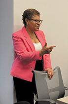 MAYOR BASS emphasizes her point at roundtable disucssion with local architects