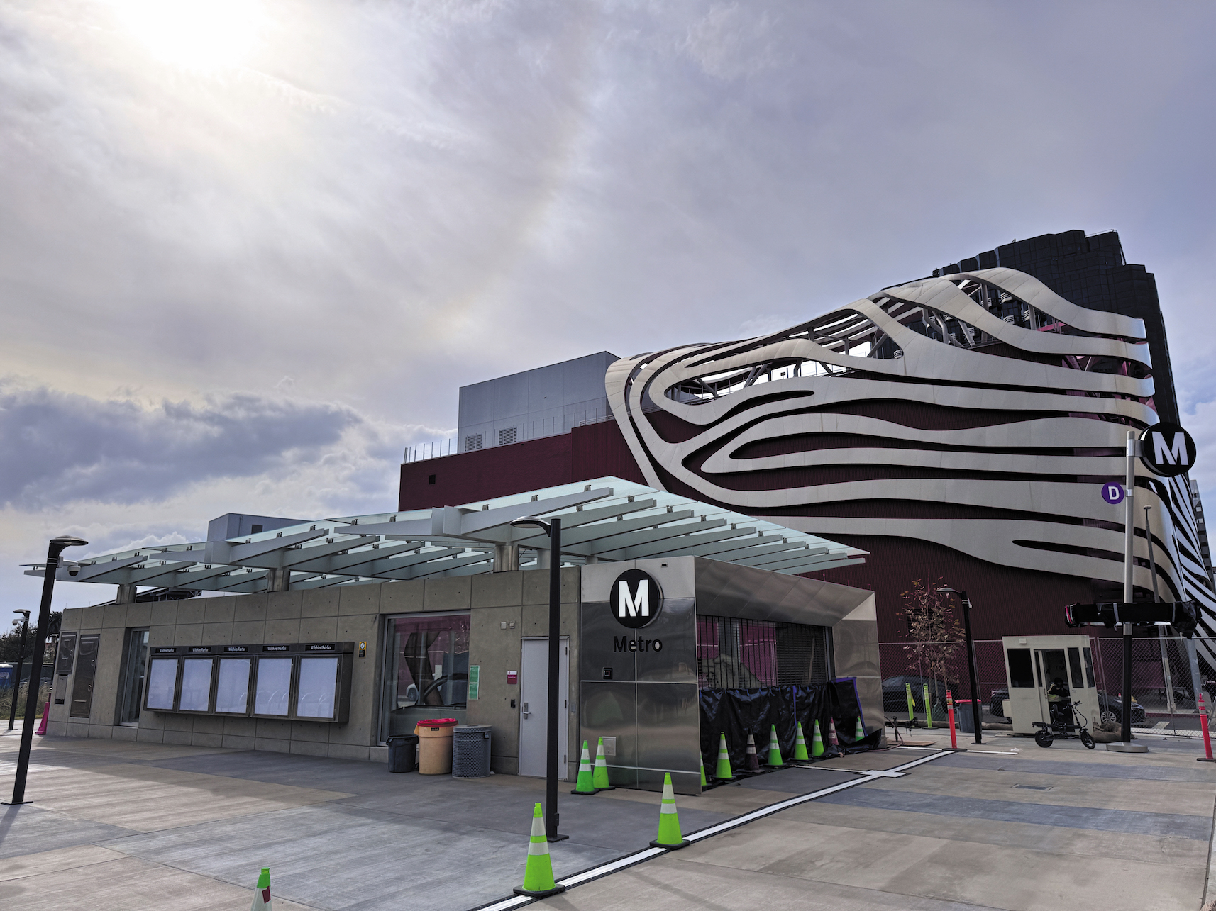 Both stations will feature artwork by award-winning L.A.-based artists. Extensive landscaping and beautification efforts have been realized, extending beyond the stations themselves and into the immediate surroundings. New medians and safety measures on Wilshire near each station were added to ensure that riders feel comfortable taking the new line.
