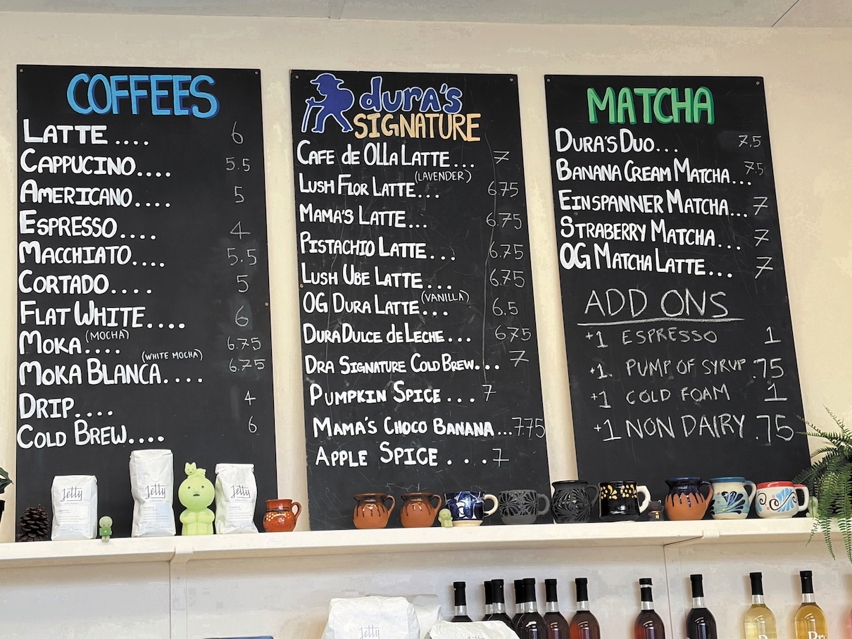 The store is also planning events, such as jazz nights, baking classes, and more. “We source our coffee from Jetty Coffee, which no one else in the area offers. So break your morning routine—come to Dura!” Hernandez-Galicia said.