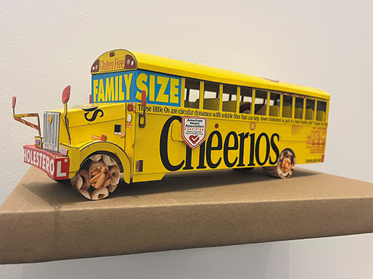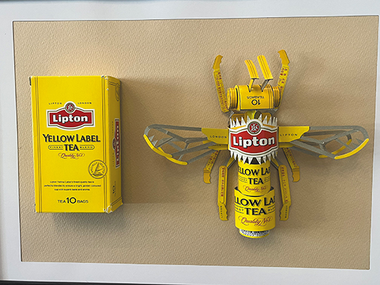 Artist Kazuma Takahashi always enjoyed transforming empty boxes into art. “Package Craft: From Candy Box to Sculpture,” at the Japan Foundation, showcases Takahashi’s delightful 3D creations. A Chivas Regal box was magically altered into a fierce dragon. An adorable yellow bee was formerly a box of Lipton tea. A cardboard sake box became a Buddhist deity. A popular breakfast cereal was granted new life as a school bus. Also included in the exhibit are patterns for turning an empty box of Sour Patch Kids candies into a perky little dog.